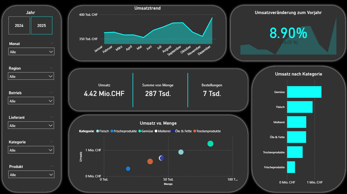 Data Analytics as a Service für KMU. Wir verwandeln Geschäftsdaten in klare, interaktive Dashboards.